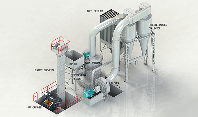 The High-pressure suspension mill ( TGM Super-Pressure Trapezoid Mill ) is used in the field of mining, building construction, metallurgy, chemical industry and so on. It can grind many non-flammable and non-explosive materials with Moh’s scale less than 9.3 and humidity lower than 6%, such as: limestone, dolomite, calcite, marble, barite, talc, gypsum, medical stone, bentonite, kaolin, pyrophylite, refractory materials and so on. The granularity of end products is adjustable between 0.613-0.033mm.